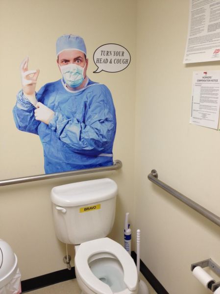 Entirely too much time is being spent in the restroom. There is now a strict 3 minute time limit in the stalls. At the end of three minutes, an alarm will sound, the toilet paper roll will retract, the stall door will open and a picture will be taken. After your second offense, your picture will be posted on the company bulletin board under the "Chronic Offenders" category.